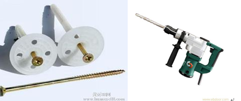 用電錘在鋁襯板的一端位置緊靠著保溫板上開(kāi)的槽打上預(yù)留孔,預(yù)留孔分別間隔在地暖管兩側(cè),管路鋪設(shè)好后,保溫釘蓋可以壓著水管和鋁襯板,然后固定上相應(yīng)的保溫釘(直徑8x80-100mm),用錘子把螺絲釘敲入即可。