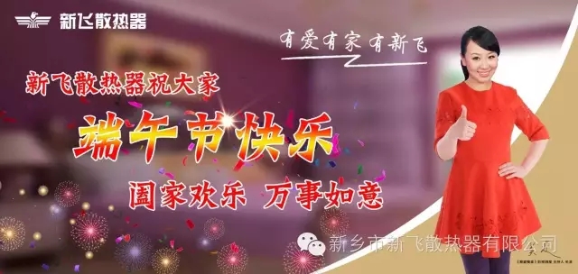 端午節(jié)和春節(jié)、中秋節(jié)一樣成為中國(guó)的代名詞,我們每一位新飛伙伴也是新飛散熱器自己的代言人,新飛散熱器有限公司董事長(zhǎng)潘紹峰先生攜新飛全體員工祝愿新飛伙伴們生意紅火,端午快樂!